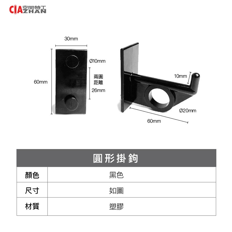 點我下載【空間特工】免螺絲角鋼配件-黑色圓形掛勾(4入)白色(4入)