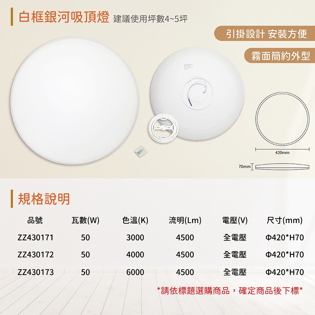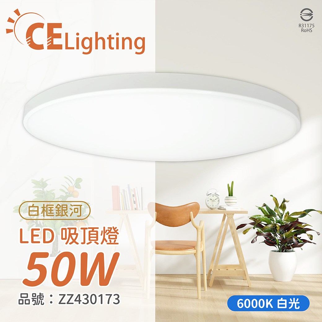 點我下載IN20008 LED 50W 6000K 白光 全電壓 白框銀河 吸頂燈 適用4~5坪