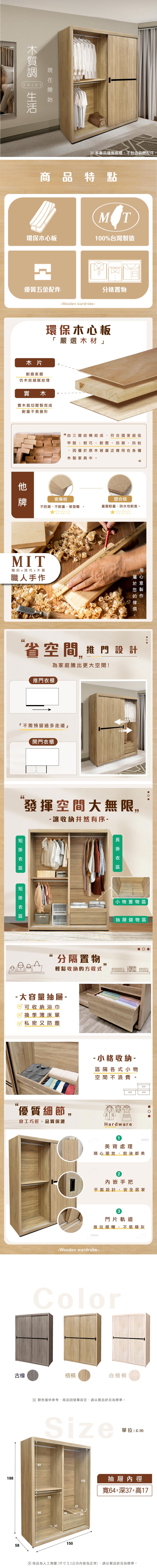 Homelike 喜家居5x7尺推門衣櫃(多色可選)(2311)雪松
