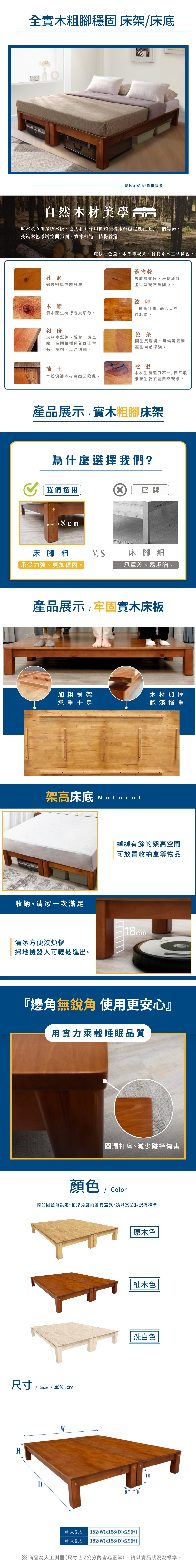 傢俱工場-強森 全實木粗腳穩固 床架/床底 雙大6尺原木色