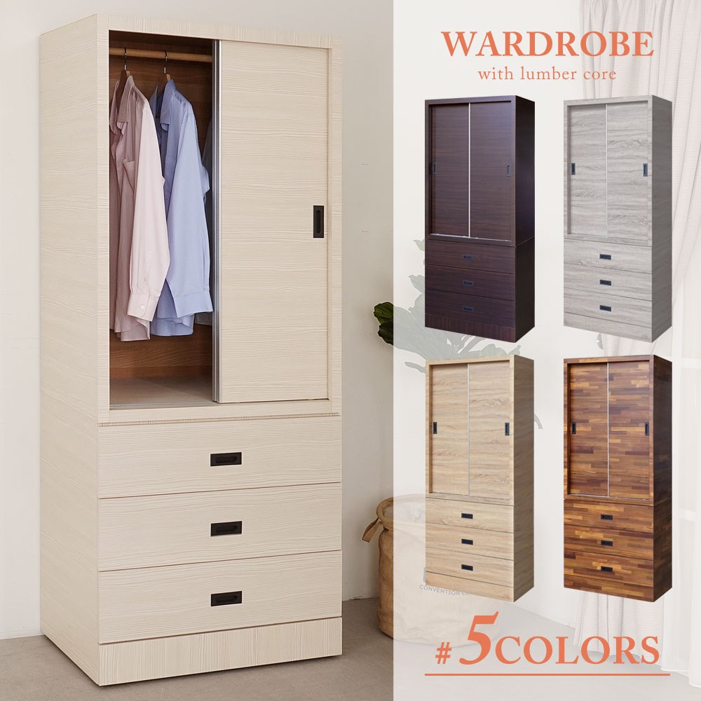 Homelike 喜家居2.7尺推門三抽衣櫃(多色可選)(2311)灰橡