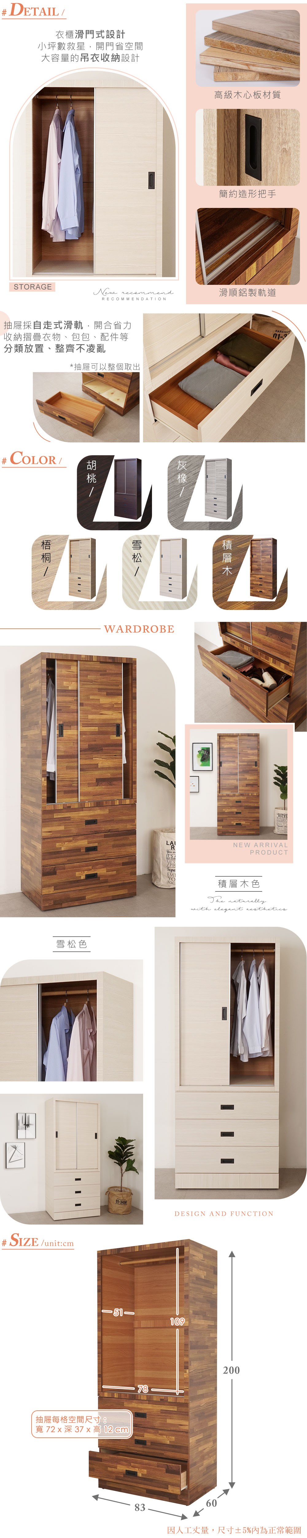 AS DESIGN雅司家-若水3×6尺衣櫥-81×59.5×178cm-三色可選