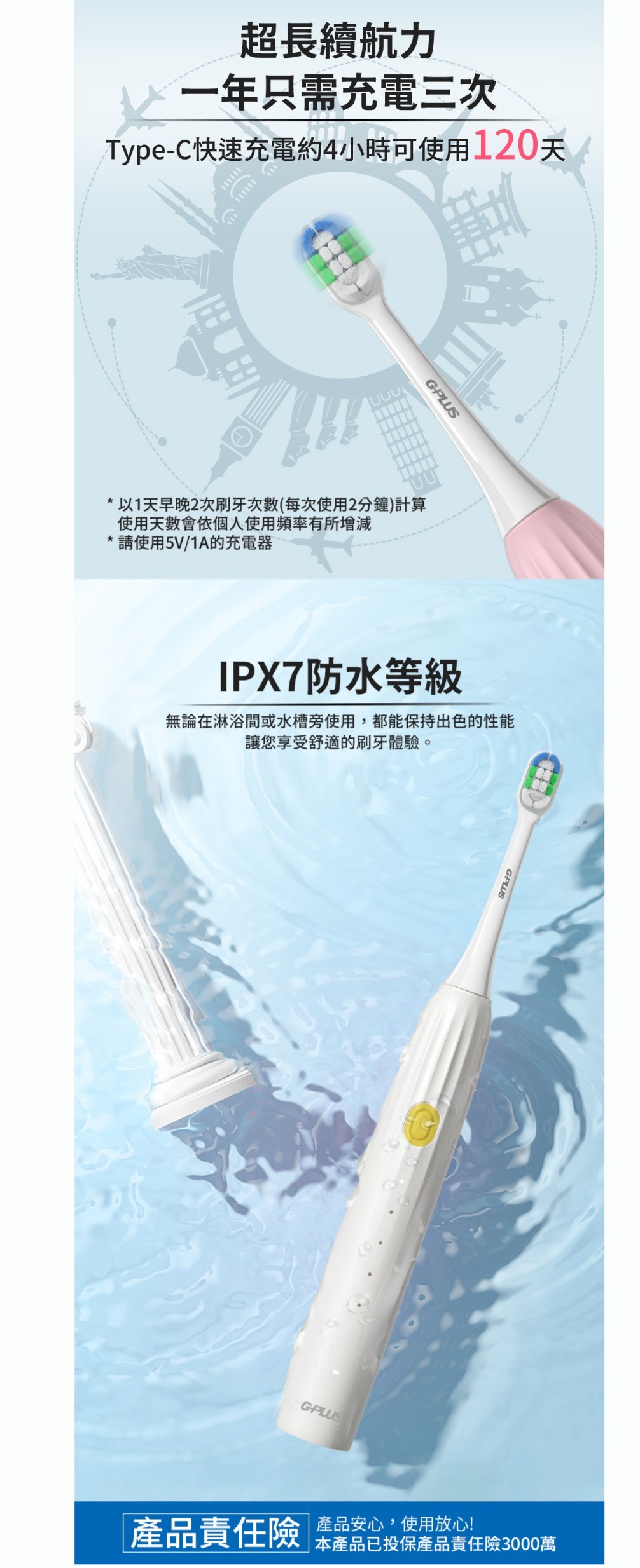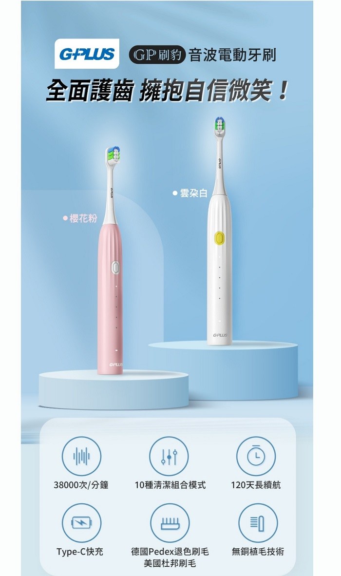 G-PLUS GP 刷豹 音波電動牙刷 ET-A003S 雲朵白/櫻花粉雲朵白