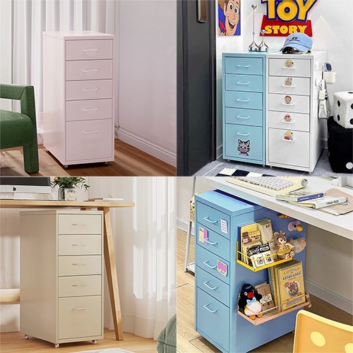 一大四小抽屜的設計,收納量大,能容納A4尺寸的物品,可依需求收納在大抽屜或小抽屜內,貼心的是抽屜前板有標籤匣設計並附贈紙卡,可以分門別類收納物品,一目瞭然方便辨識。底下附有四個活動滾輪,方便您隨心所欲的移動到需要使用的地方,文件櫃、收納櫃、工具櫃、床頭櫃、側邊櫃都很適合。