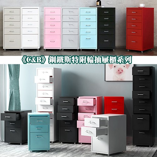 《C&B》鋼鐵斯特附輪五抽屜櫃,是外銷歐美日韓的暢銷商品,採用0.5mm優質冷軋鋼板,外表輔以先進健康環保的粉體處理,無毒無甲醛,作工精緻穩固耐用。