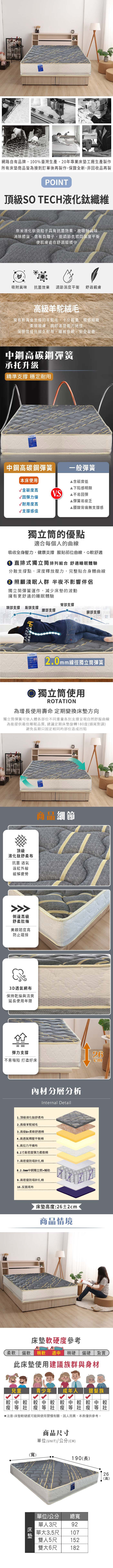 比佛利石墨烯恆溫乳膠獨立筒床墊3562單人加大