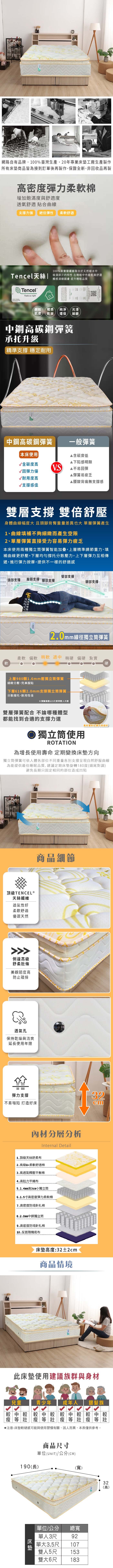 【顛覆設計】天絲棉表布 護邊 護背 舒適健康獨立筒床墊(單大3.5尺)