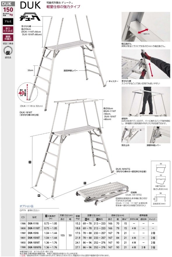 Hasegawa 長谷川工作梯 有輪子/可伸縮/可收摺/超大平台高處作業梯/作業台 DUK-1516T