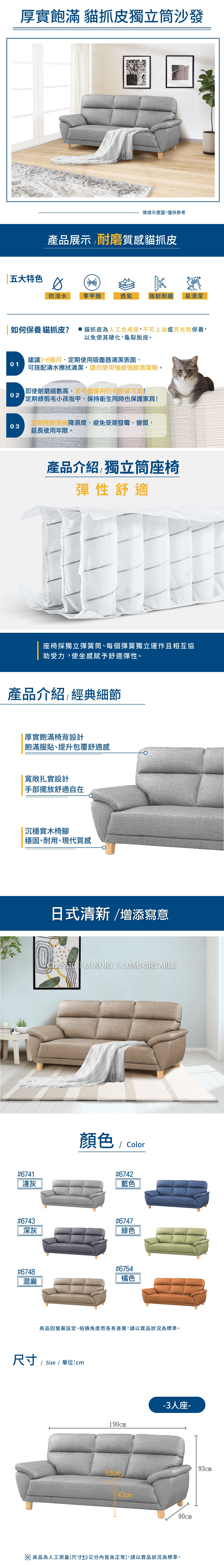 【UHO】新古典貓抓皮三人沙發02米