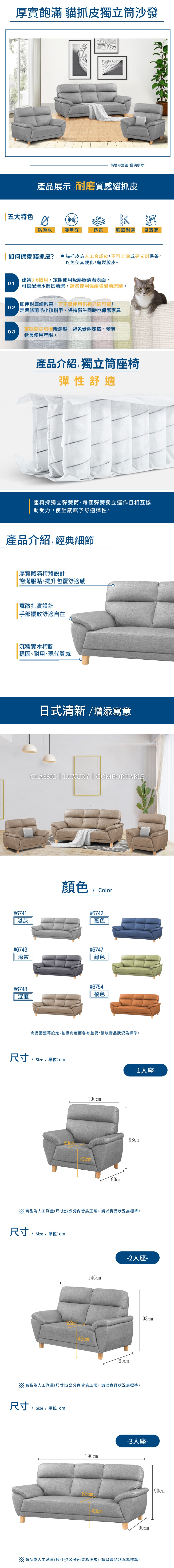 傢俱工場-星辰 厚實飽滿 貓抓皮獨立筒沙發 1+2+3人座深灰#6743