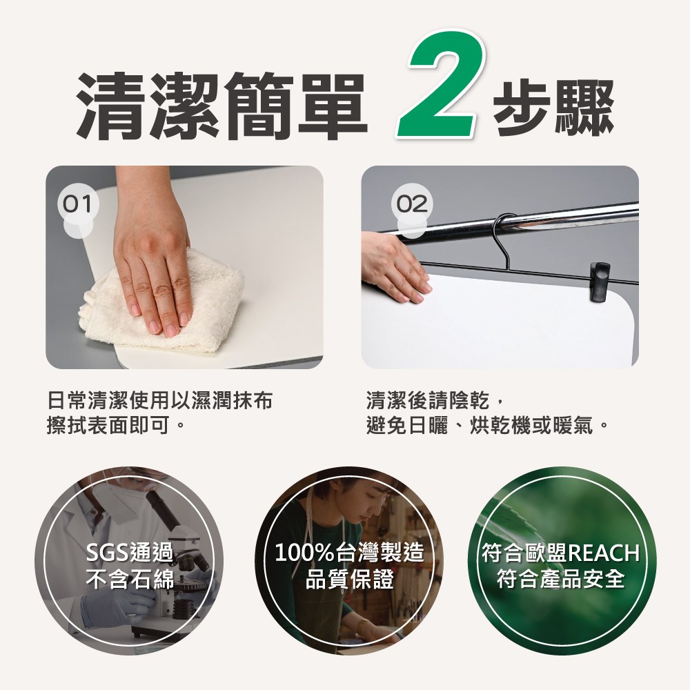 ●一般清潔以濕潤抹布擦拭即可,可以搭配中性洗碗精清潔,最後再仔細清除洗碗精殘留。