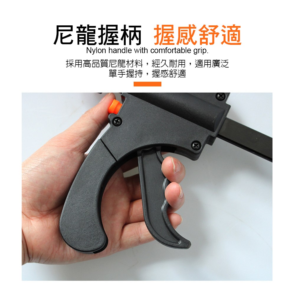 1按下快速釋放按鈕以自由定位鉗夾,然後擠壓扳機以施加壓力。