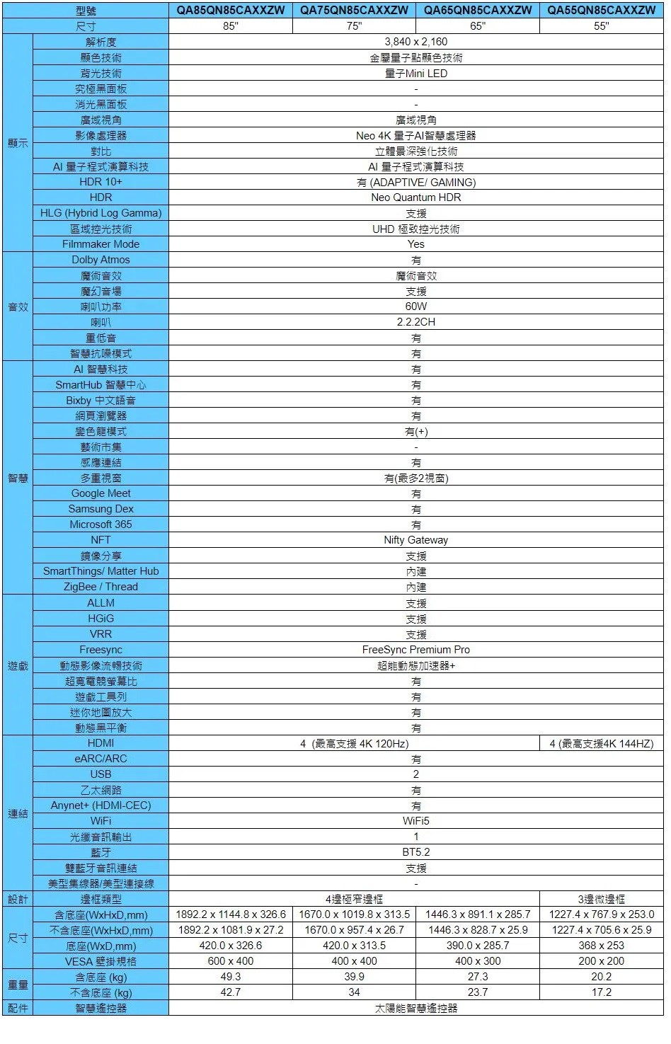 限期登錄送好禮 三星 SAMSUNG 85吋 4K Neo QLED智慧連網顯示器 QA85QN85CAXXZW 85QN85C