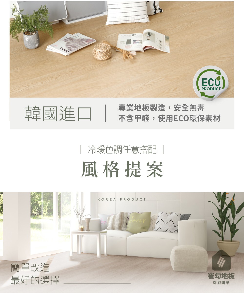 樂嫚妮 5坪/世界專利Uniclic卡扣地板/SPC石塑地板(6色)淺黃栓木色