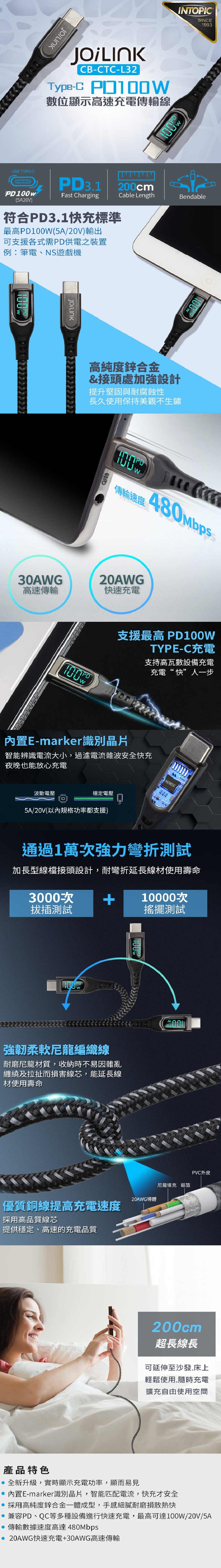 M.Power PD 100W 快速充電線 USB-C |全黑色 灰紫色