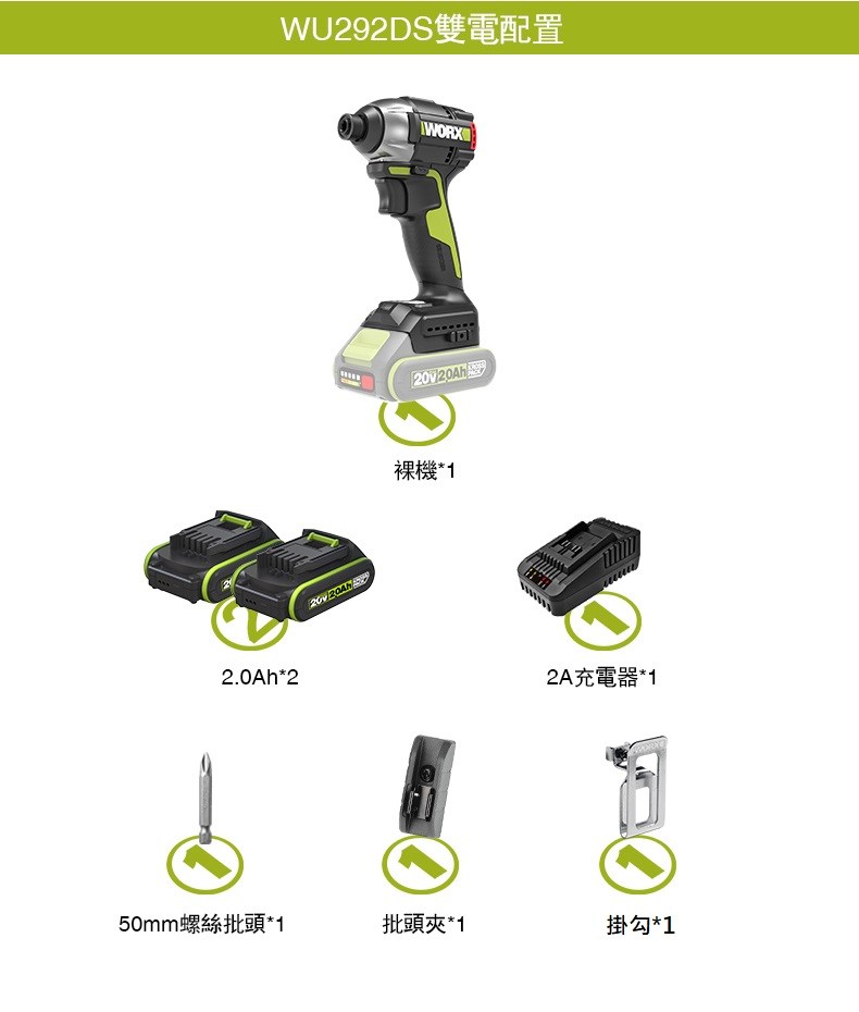 WORX 無刷衝擊起子機 230牛頓米 3速調整 雙電池 WU290D