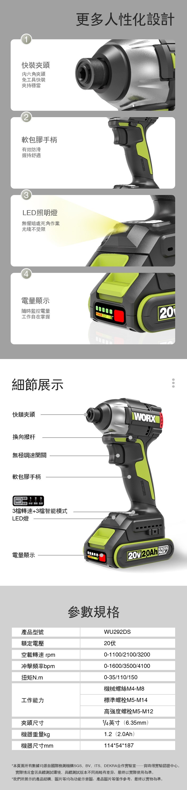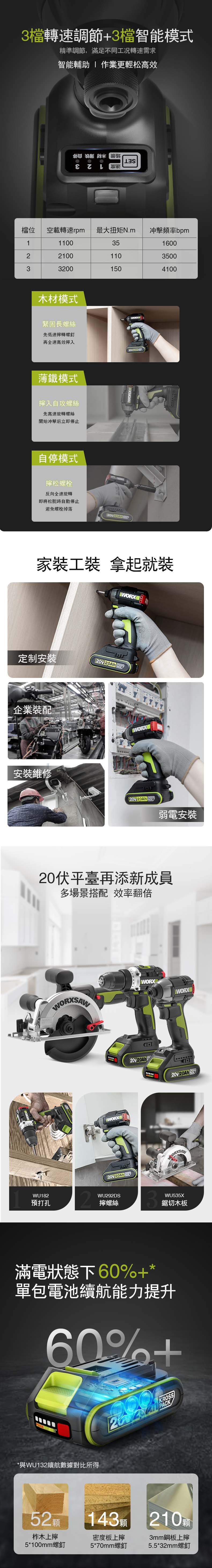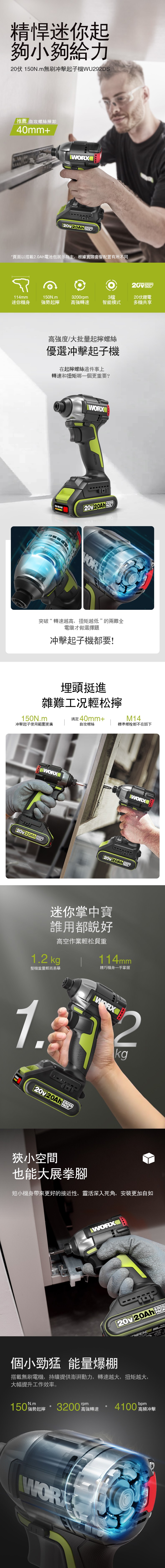 WORX 威克士 20V 無刷震動衝擊電鑽 WU369-2
