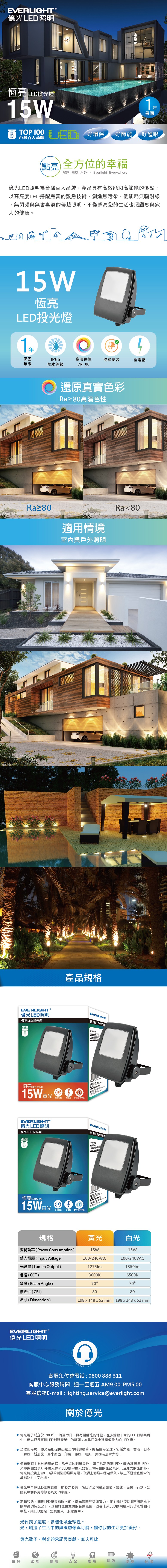EVERLIGHT 億光 星宇LED投光燈 15W 防水等級IP65 全電壓100-240Vac 1盒