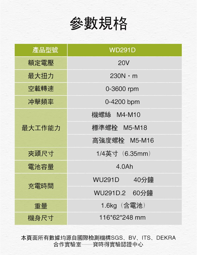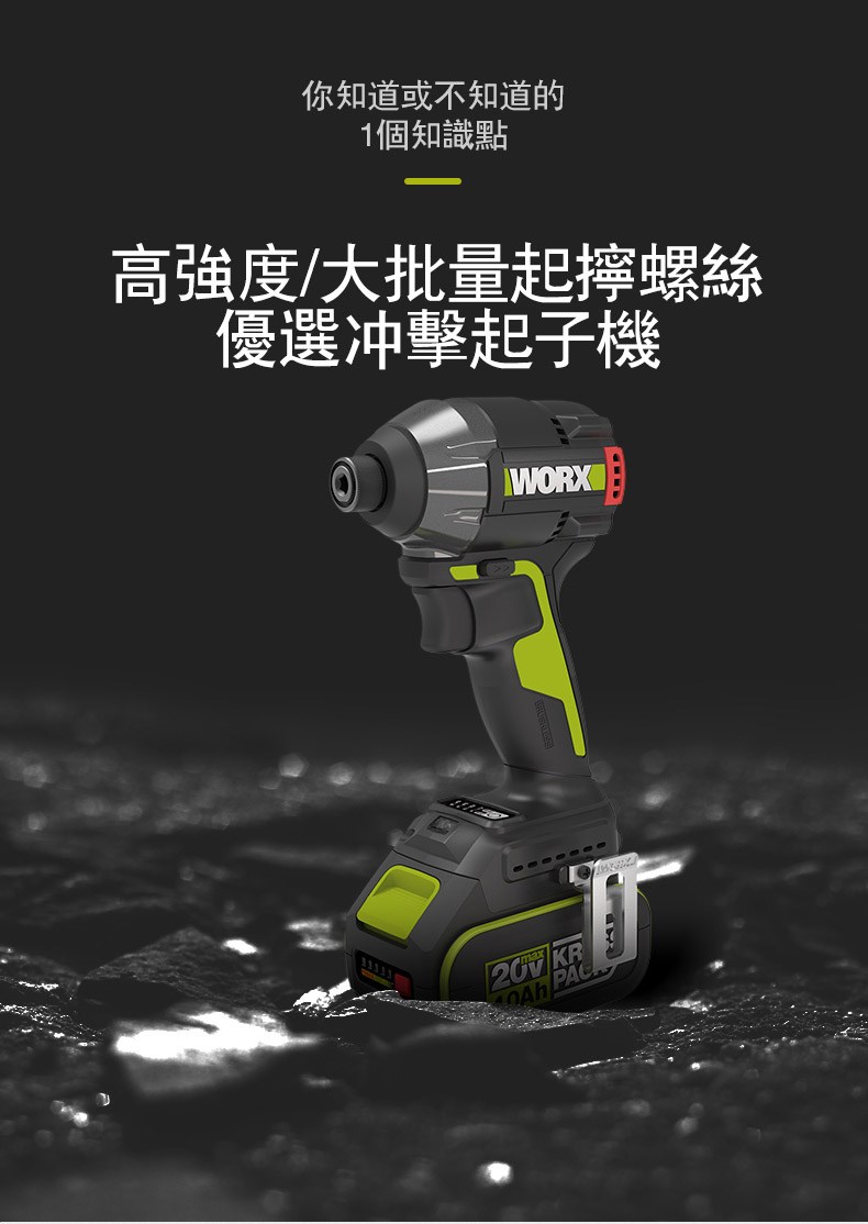 WORX 威克士 20V無刷鋰電8段速衝擊起子機 4.0Ah雙電池 WU291D