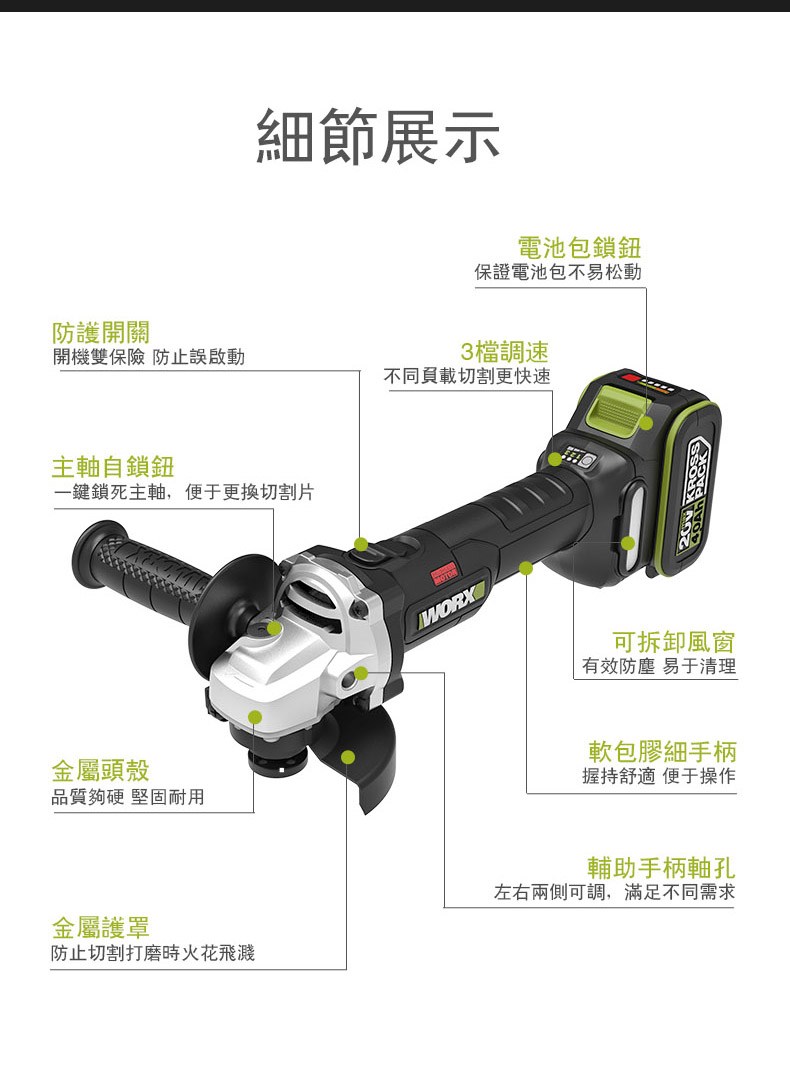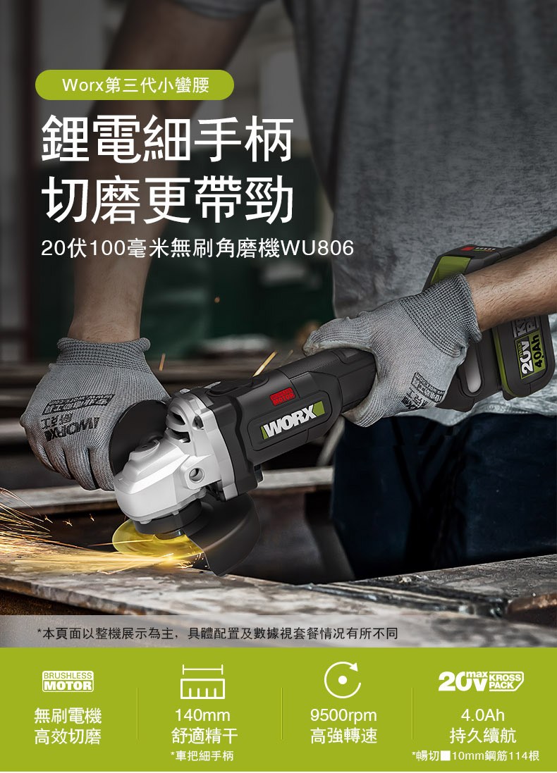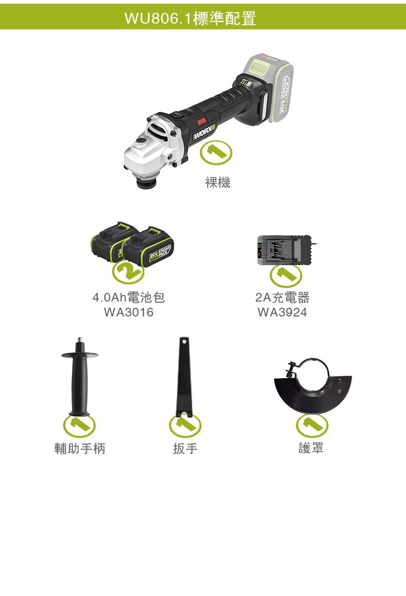 WORX 威克士 20V 鋰電無刷平面砂輪機 4.0Ah雙電池 WU806