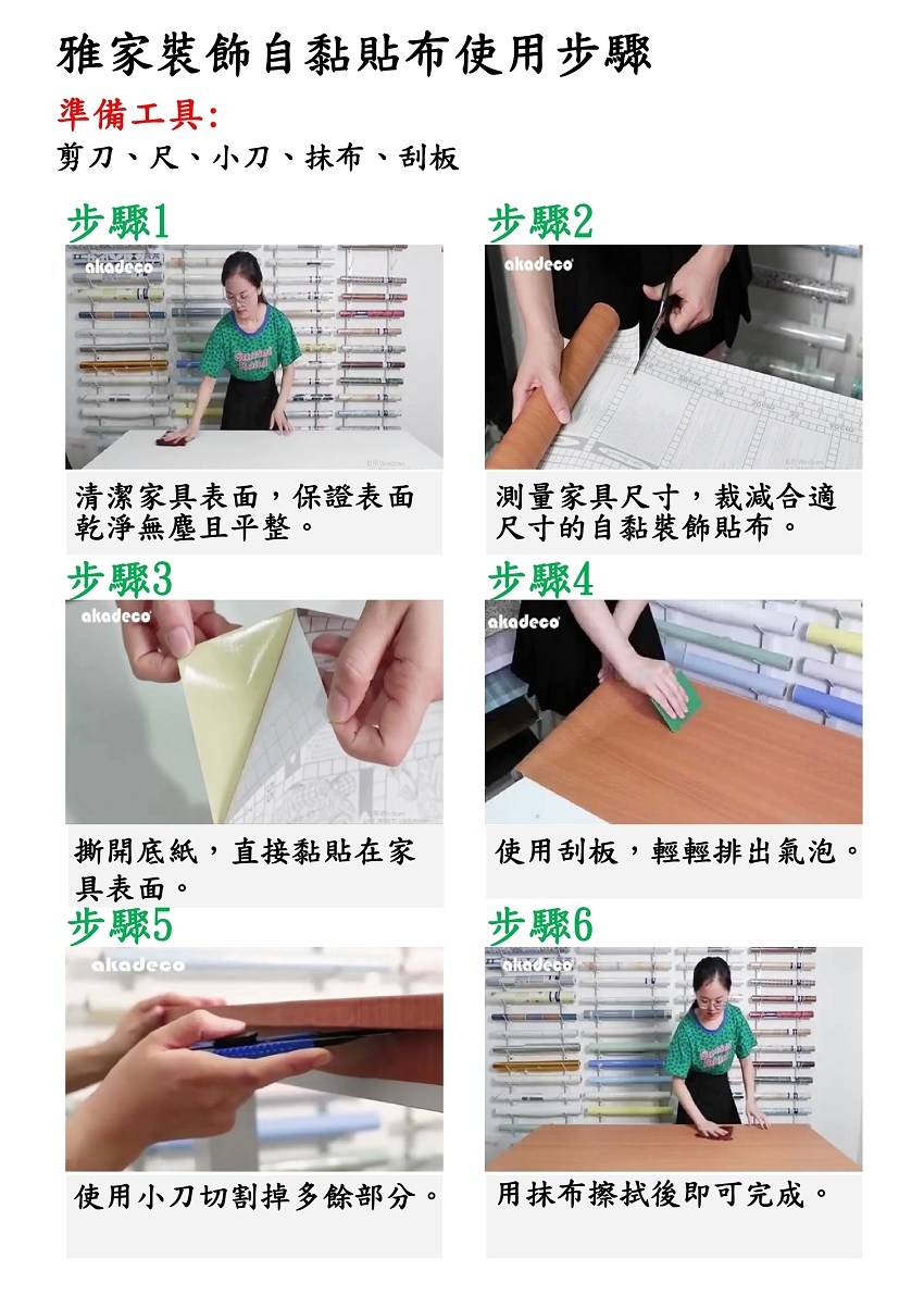 - 使用前先清潔黏貼處表面,裁剪尺寸,邊撕除裡紙邊黏貼