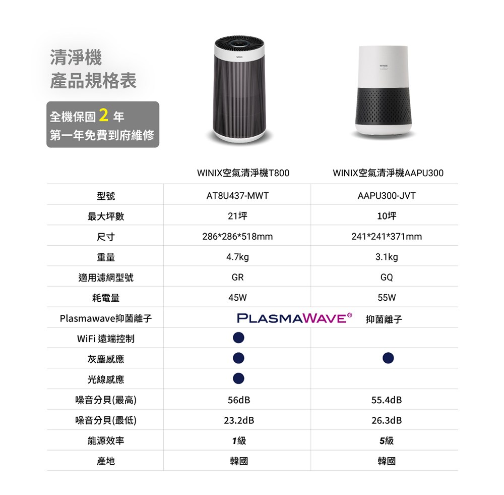 【WINIX】AT8U437-MWT 空氣清淨機(T800)