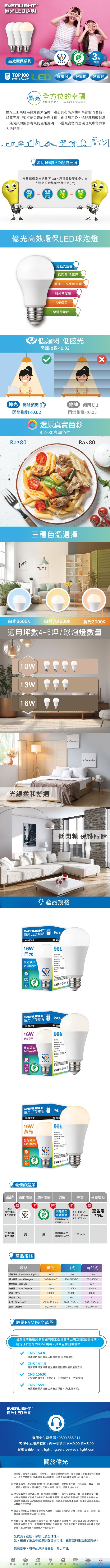 APEX LIGHTING 艾沛斯照明 E27 球泡 LED 13W A6531L-02 1560 lm P3000 110V 台灣製 暖白光 1個