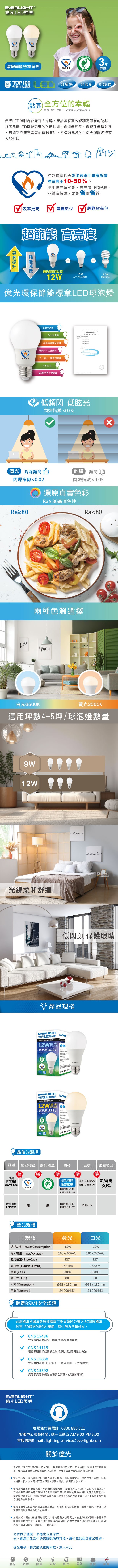 HAPPYBRIGHT 樂亮LED照明 12W 燈泡 白光 LED A60 E27 燈頭 適用電壓: AC100V-240V 1個