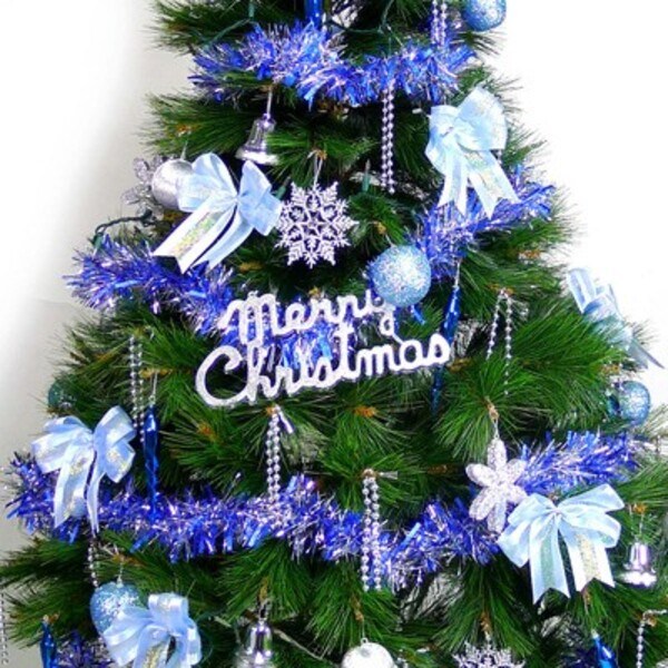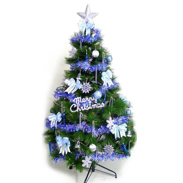摩達客耶誕-台灣製5呎/5尺(150cm)豪華版晶透藍系聖誕樹(銀藍系配件組)+100燈LED燈藍白光2串(附IC控制器)本島免運費