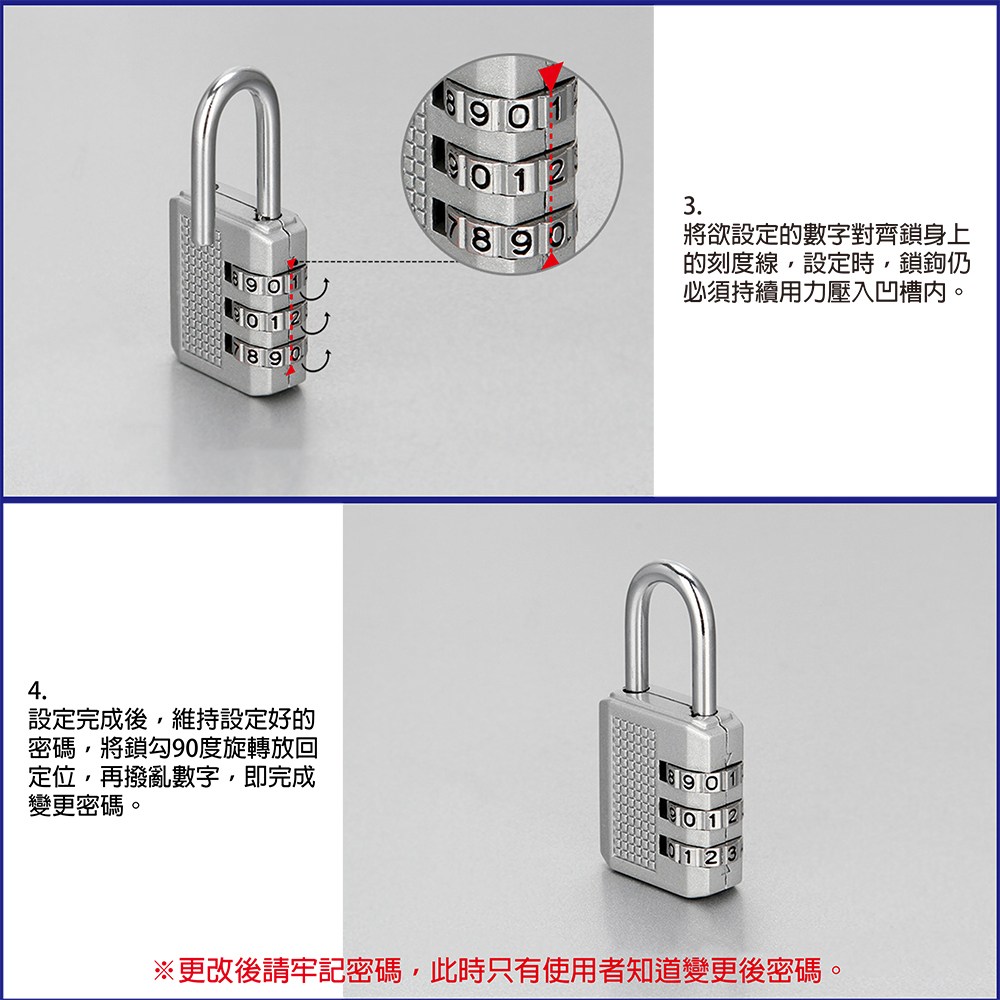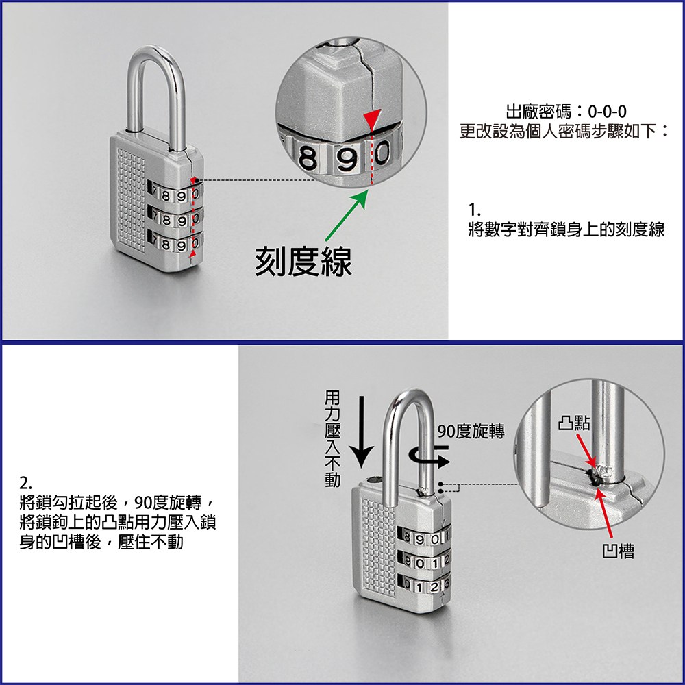 ※注意:上鎖時務必將所設定之密碼調至對齊箭頭。