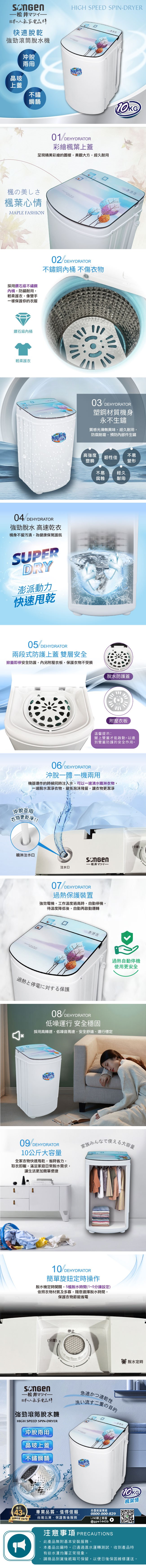 【SONGEN松井】日系10KG不鏽鋼滾筒沖脫兩用強勁脫水機