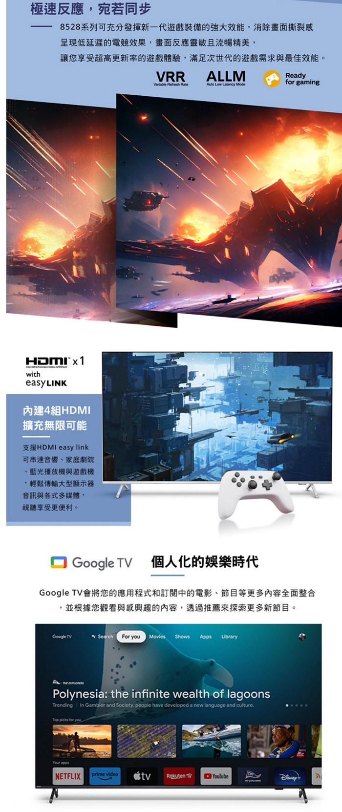 Philips 飛利浦 65吋4K 超晶亮 Google TV智慧聯網液晶顯示器 65PUH8528