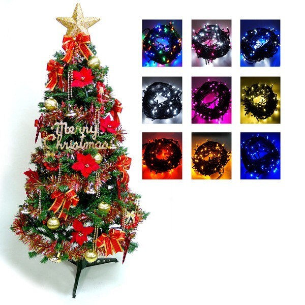 【摩達客】超級幸福15尺 450cm 一般型綠聖誕樹+紅金色配件組+100燈LED燈9串 紅光