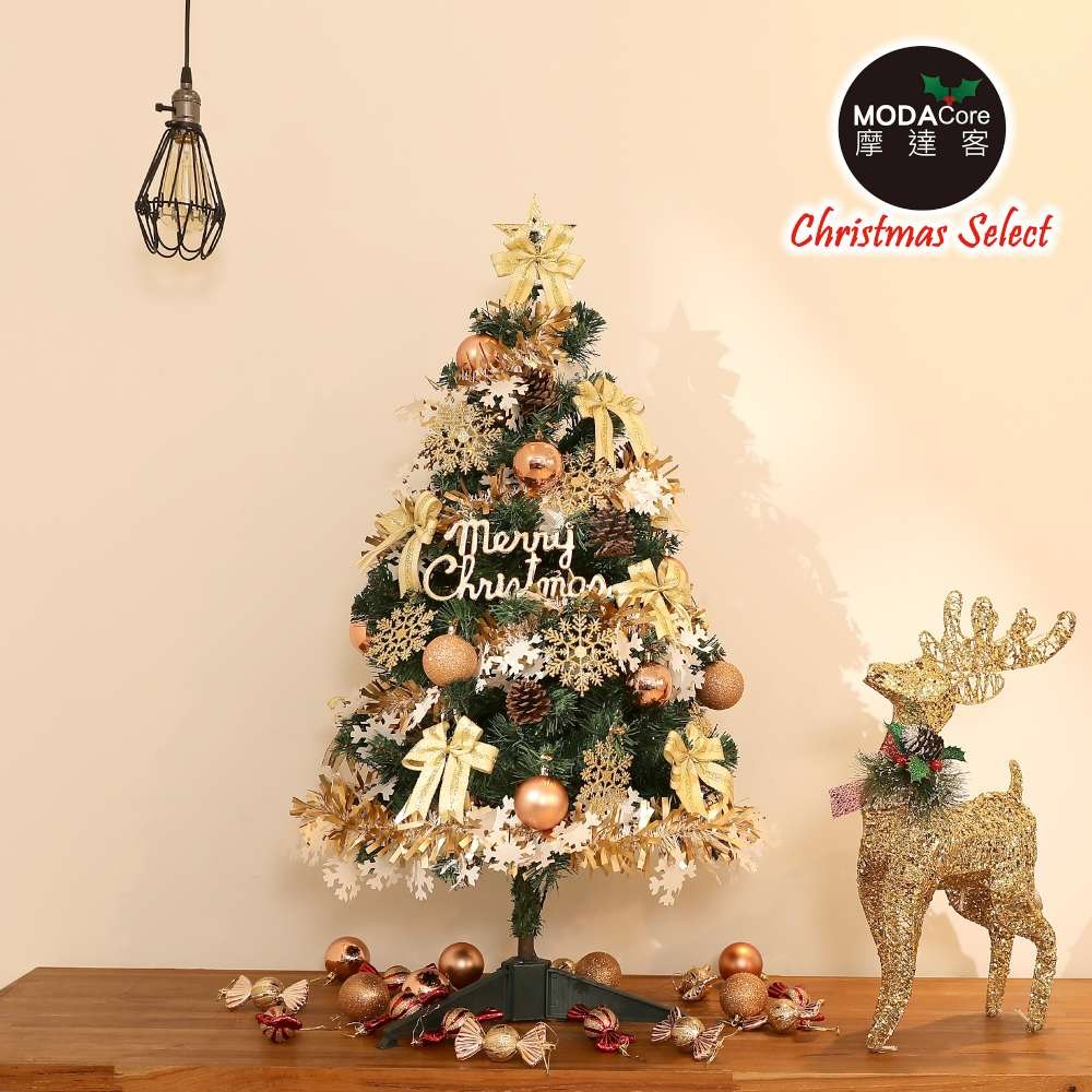 MODACore 摩達客 - 台灣製8呎/8尺(240cm)豪華版氣質霧金系聖誕樹(金色系配件組)+100燈LED燈暖白光3串(附...
