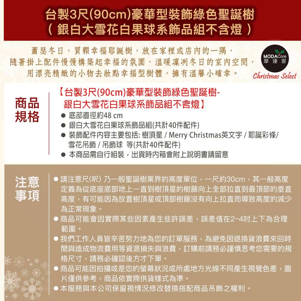 摩達客耶誕★台製豪華型3尺/3呎(90cm)夢幻白色聖誕樹 裸樹(不含飾品不含燈)本島免運費