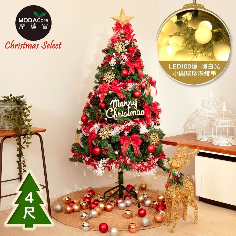 摩達客 5尺特仕幸福型裝飾綠色聖誕樹(銀白熱情紅系)含全套飾品不含燈