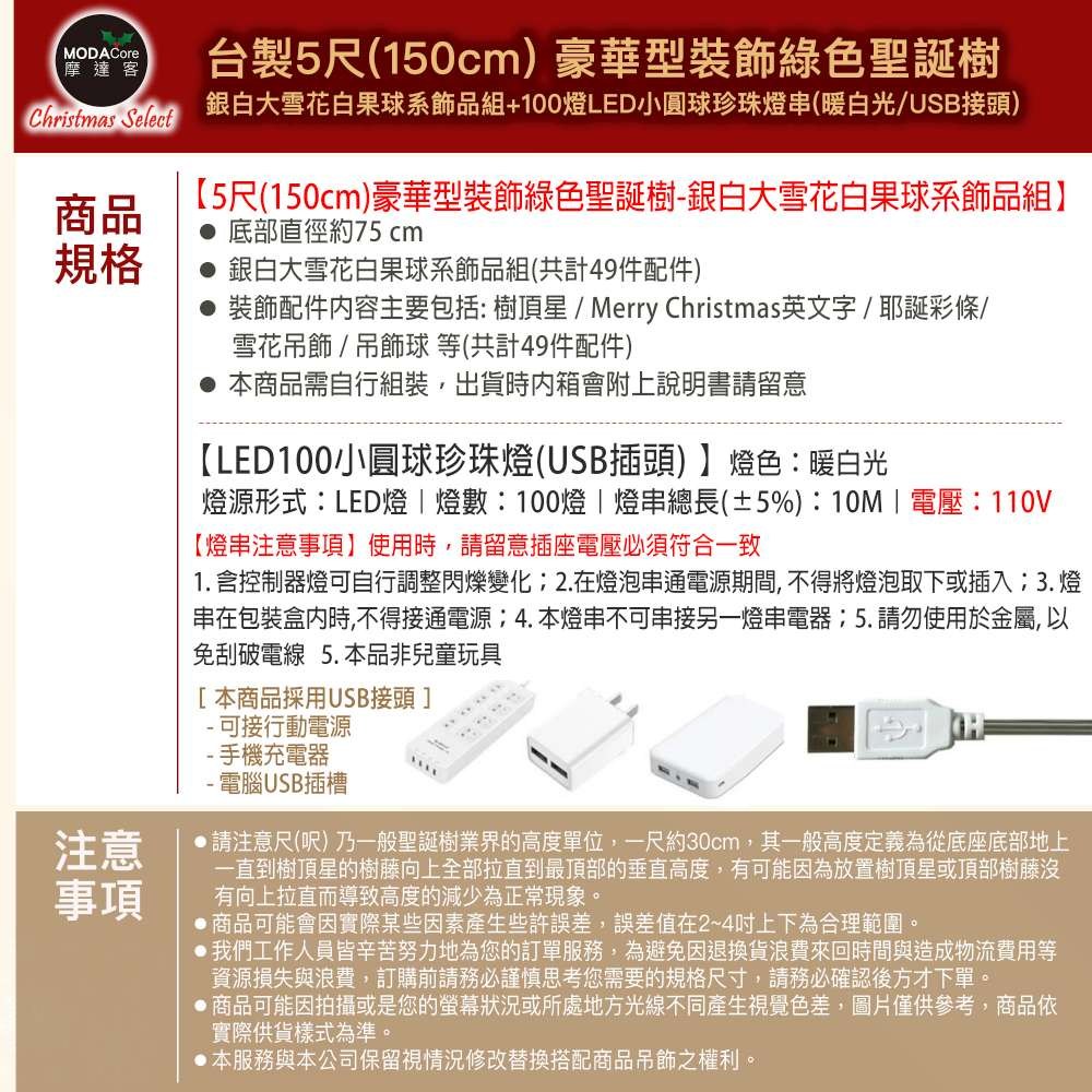 摩達客 豪華版夢幻聖誕樹 浪漫櫻花粉銀系配件+100燈LED燈USB充電式 120cm 粉紅色