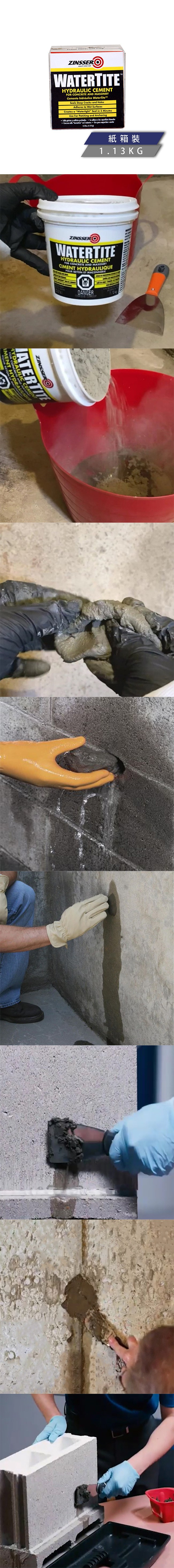 ※注意事項:使用前請詳閱使用說明書!使用前請確實做好防護包含手套、口罩與護目鏡。混拌堵漏水泥時可能伴隨輕微發熱代表水泥開始水合與固化,請在均勻混合後五分鐘以內使用,乾固後無法重新添加清水再調和。孔隙過小的時候請以鑿孔方式,將其擴大至少直徑半公分再填封。使用前清除鬆動碎裂的水泥並確保要修補的表面與堵漏水泥是潮濕的。5分鐘內可塑形,10分鐘內乾固,固化28天達最大強度。清除堵漏水泥建議以物理方式磨除或敲除。
