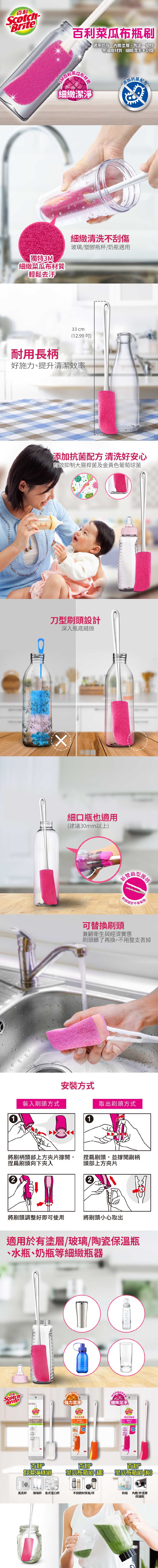 3M百利菜瓜布瓶刷/粉紅/1刷柄+2刷頭