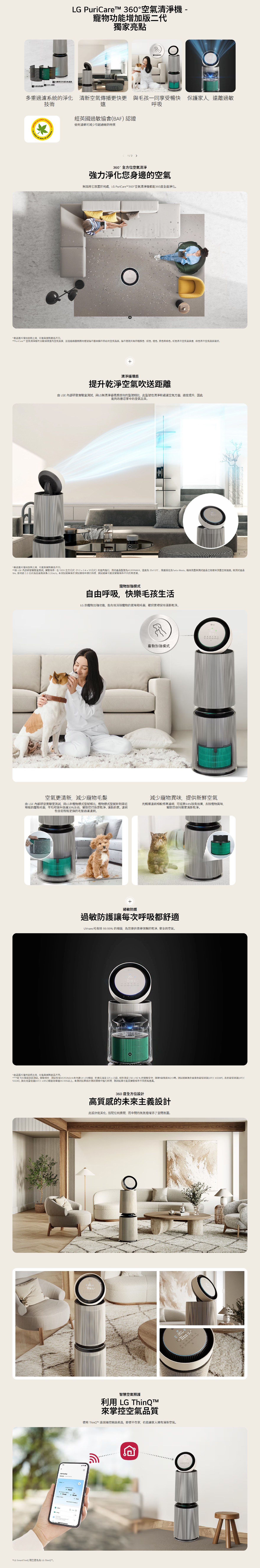 LG PuriCare 360°空氣清淨機 寵物功能加強版(單層)AS651DSS0
