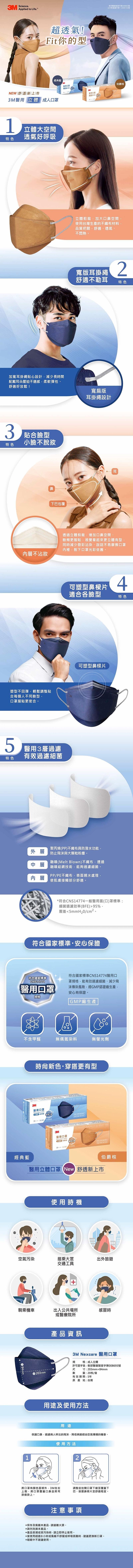 【醫護寶】3M-8990C 醫用口罩 20入 成人立體款 (經典藍/伯爵棕)