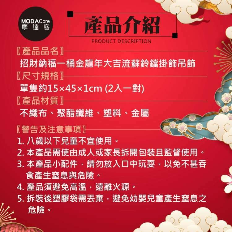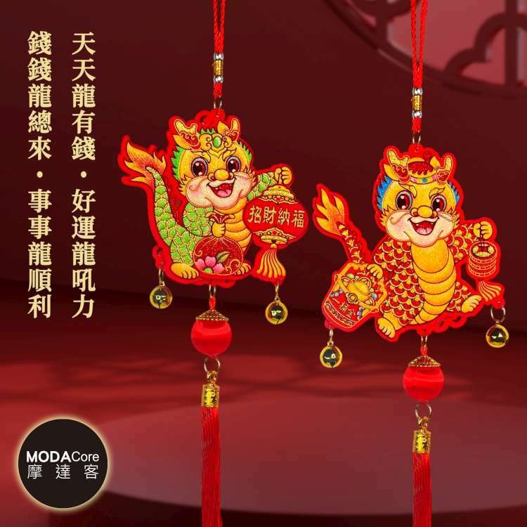 摩達客◉春節開運招財◉金龍龍年大吉五福流蘇吊飾掛飾