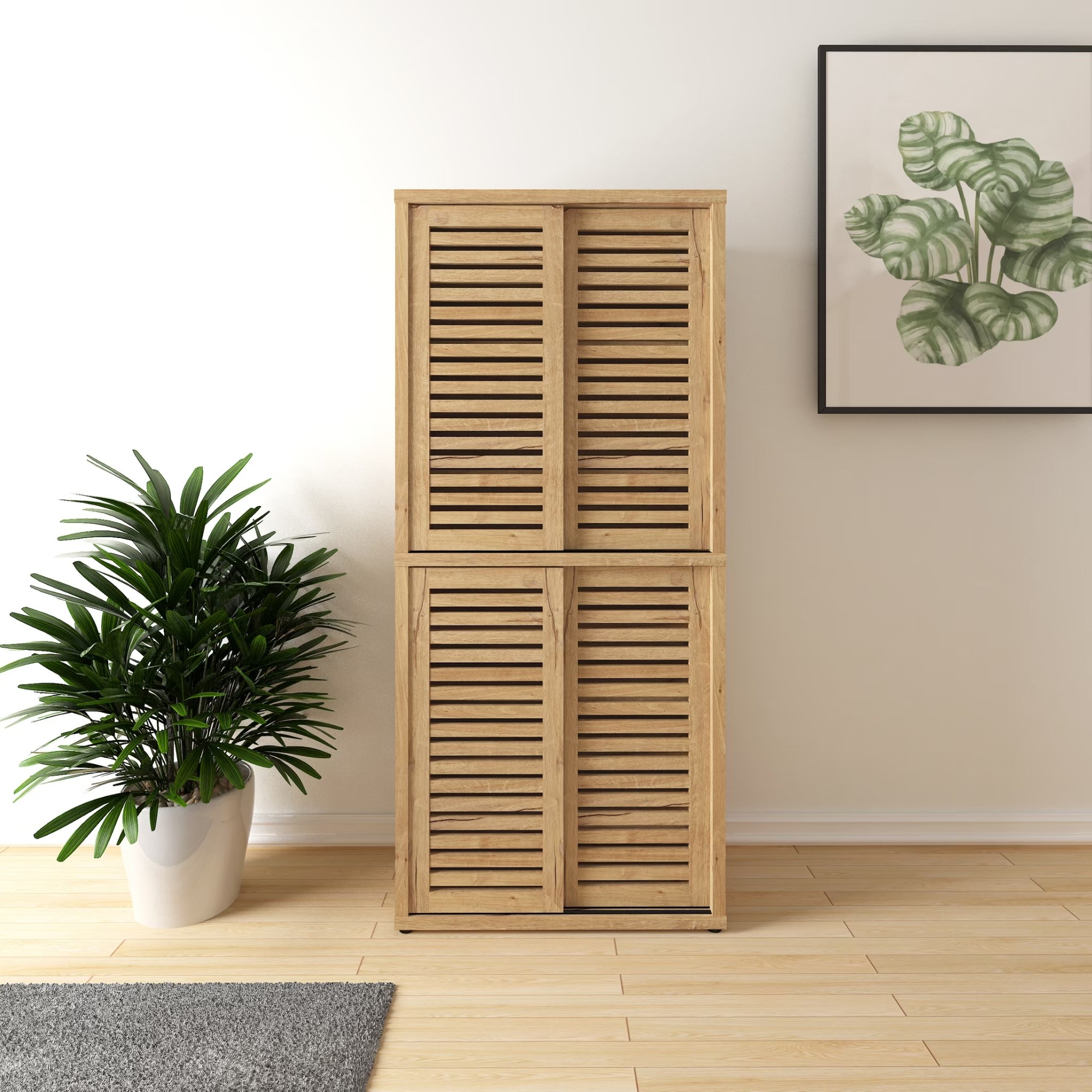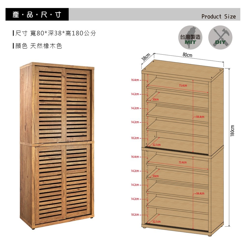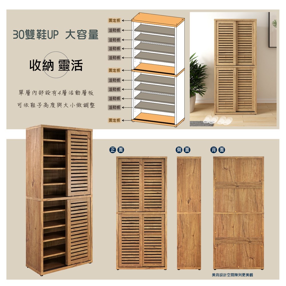 和風雙層推門透氣高鞋櫃 收納櫃 置物櫃 天然橡木色