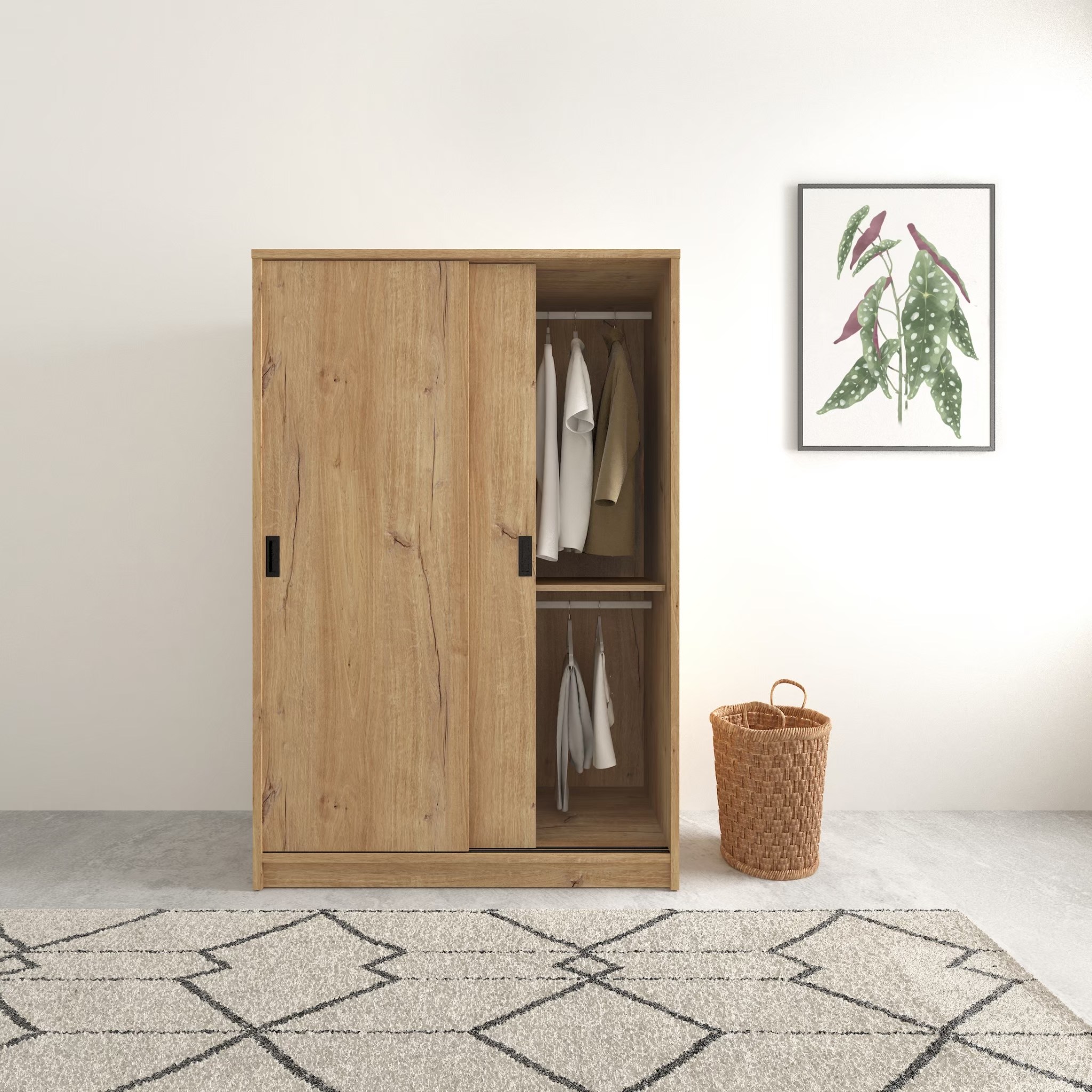 Boden-喬西4尺灰橡色推/拉門六抽衣櫃(雙吊桿)