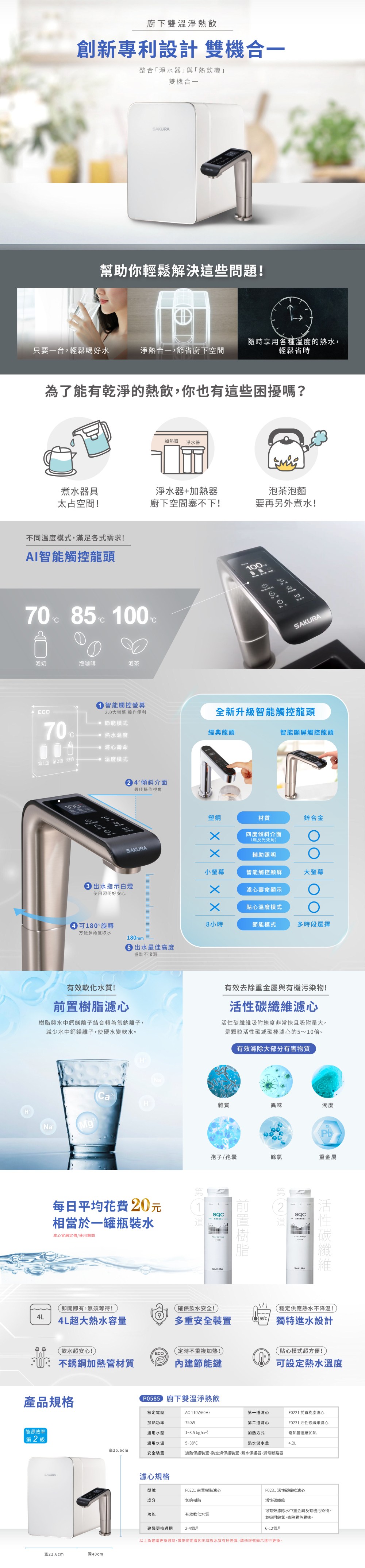 SAKURA 櫻花 廚下雙溫淨熱飲淨水器 P0585