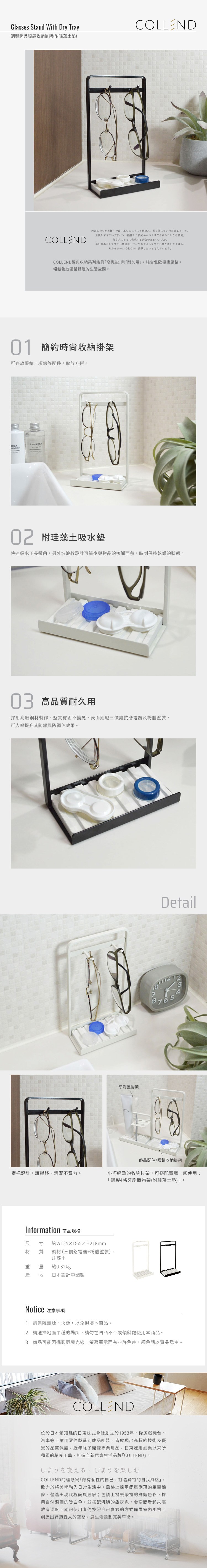【日本COLLEND】鋼製飾品/眼鏡收納掛架(附珪藻土墊)-2色可選-摩登黑