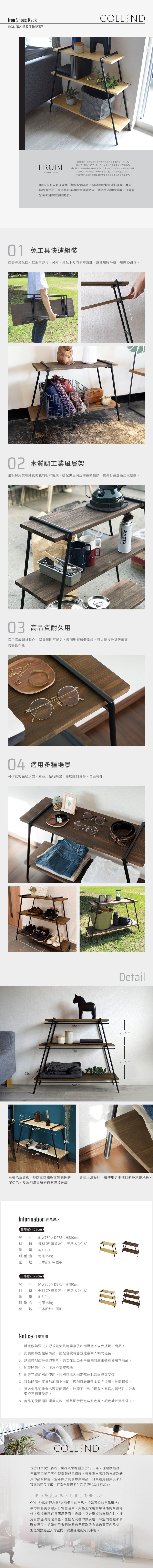 【日本COLLEND】IRON 實木鋼製三層置物架-2色可選-淺棕