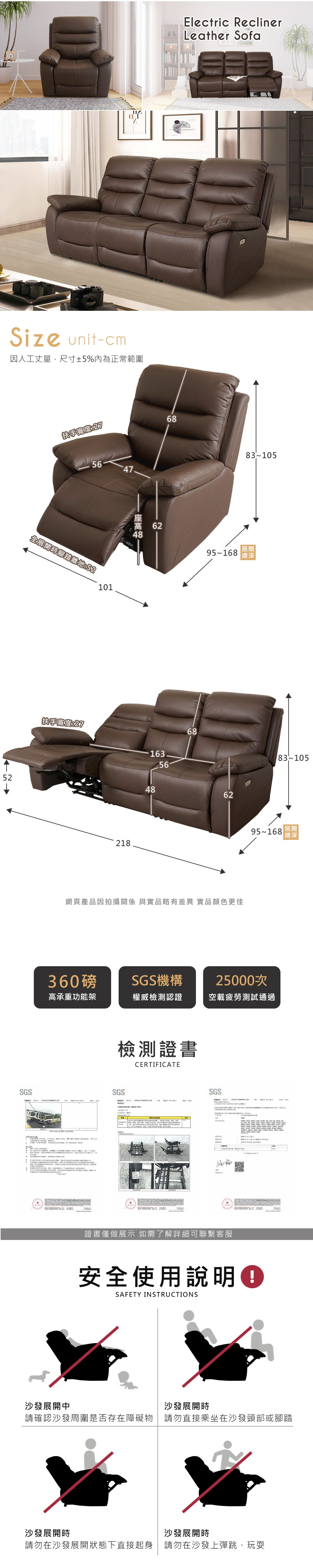 傢俱工場-杜老爺 零靠牆240CM 貓抓皮雙電動沙發/沙發躺椅 (附USB孔)淺卡其#627-10
