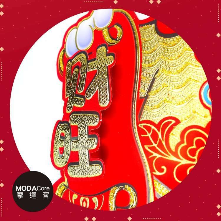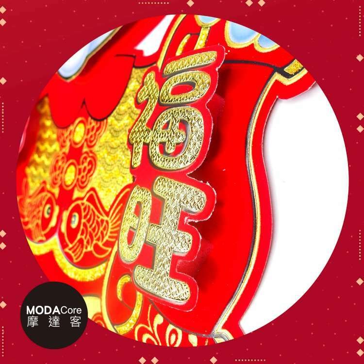 摩達客 春節開運招財 立體大金福字開心龍抱元寶斗方 單片春聯
