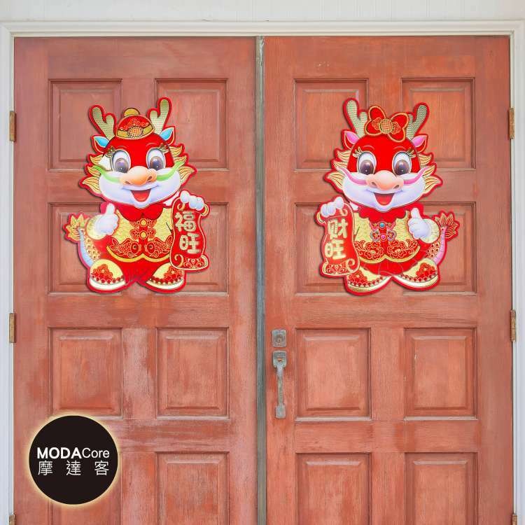 摩達客◉春節開運招財◉植絨大眼龍平安喜樂龍年吉祥門聯對聯春聯兩片組